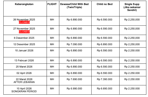 Penalti Pembatalan Tour akibat Visa Rejection dan Medical Related Reason dengan bukti medis mendukung (Refund Policy)